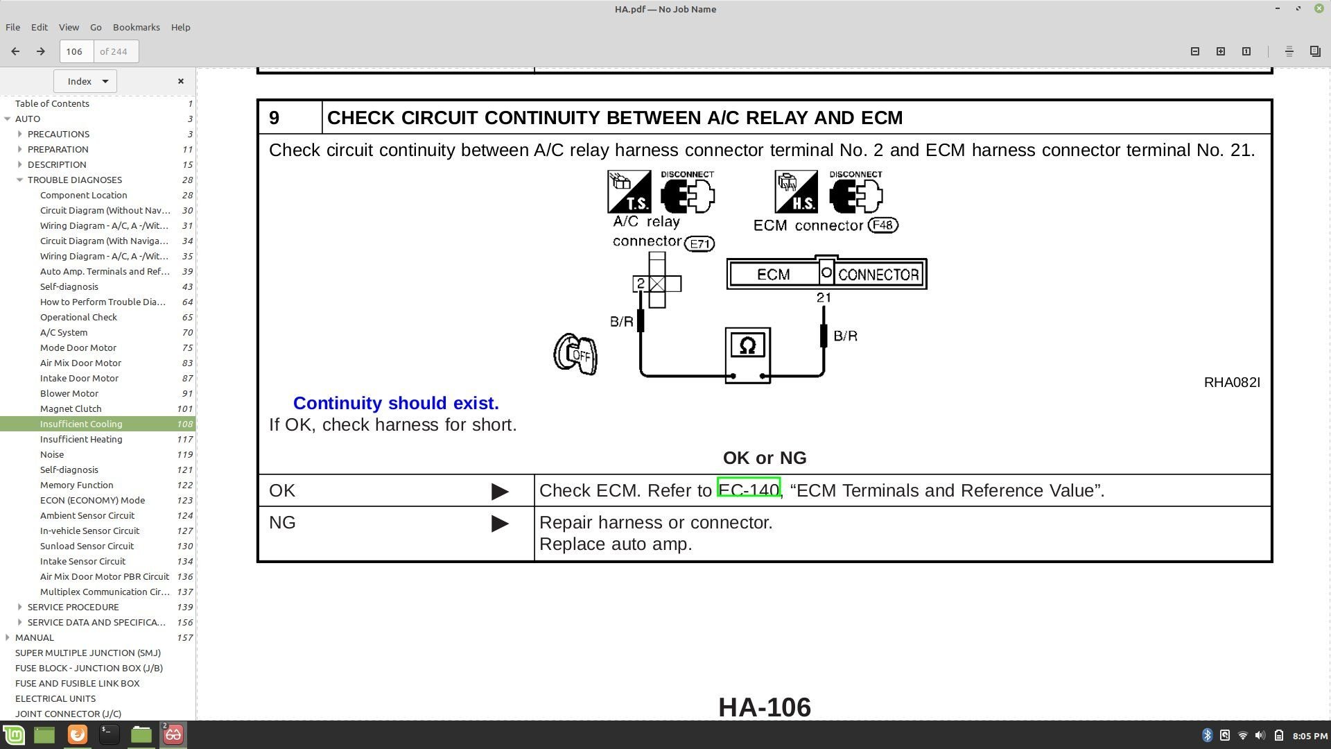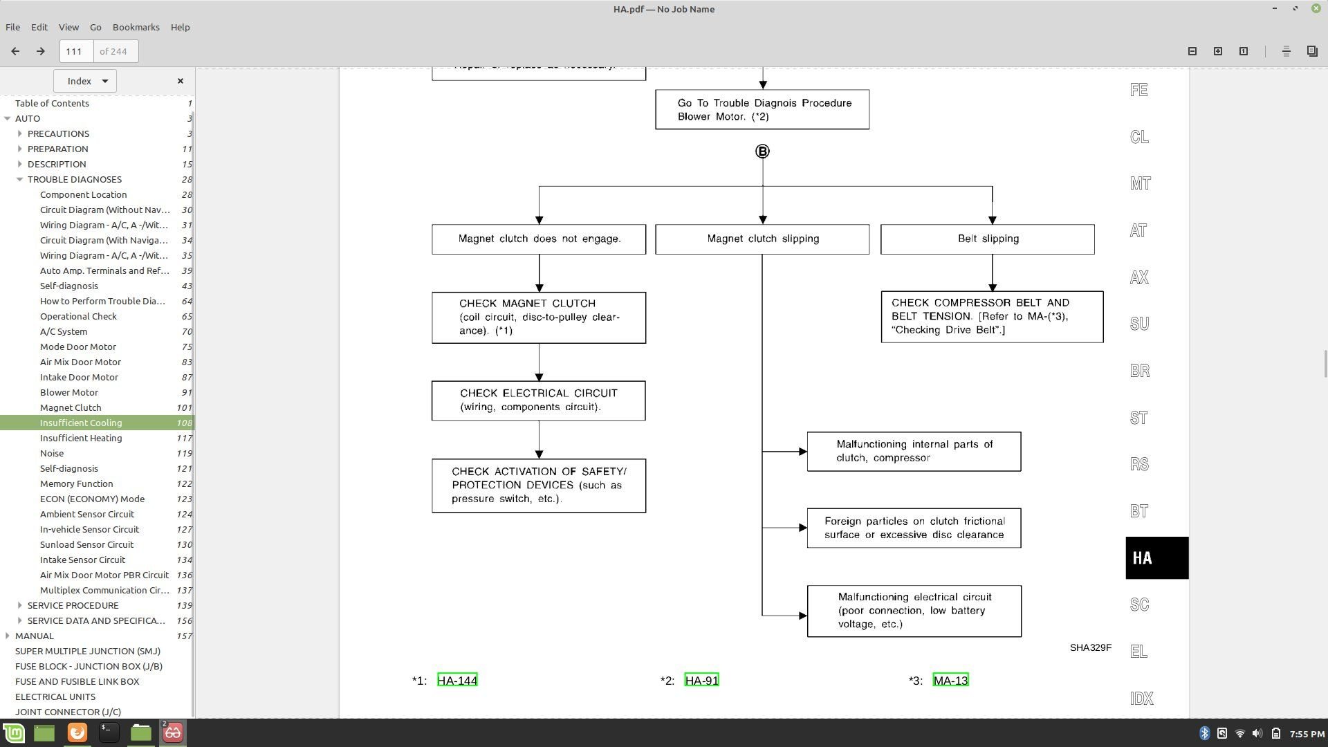No, you did not, unless you tested the entire circuit from console to compressor harness connector. There are a lot of components inbetween. Everything you need to know including testing the high-side switch you're so worried about is listed in a step-by-step procedure in the FSM in the link I sent you and it's pretty easy if you're handy with a multimeter. If you're not, then this probably isn't the job for you. This is a couple hour diagnostic at the most, including time to gain access to the ECU and amp unit (if you're so equipped). I'm not really sure what we are still going on about. I am referencing my own FSM for my '03 and you should be able to knock out the work flow pretty quick, but you have to read it. There really isn't much to it but you need to follow the procedure. Unless you can rattle off all the circuit component checks you've already preformed, which you haven't, so you can't, I'm not sure where to start other than re-stating and re-typing the FSM, which I'm too lazy to do.