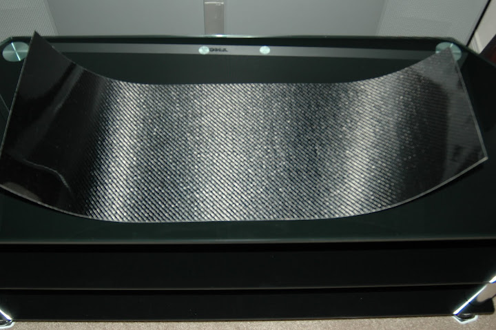 Hmmm.... I was gonna do something similar when I purchased this 11"x32" carbon fiber sheet which cost me $50. Eventhough it's only .015" thick with 3M adhesive, it was not flexible enough for the overlay and I think the adhesive could not take the high temp. This piece is best used on flat surfaces like your door pillars or dash. I'll find some use for it.