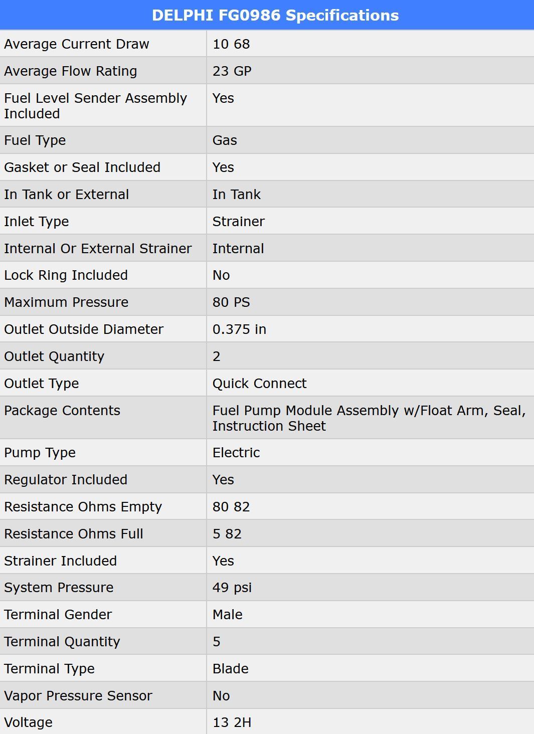Delphi's pump is rated at an average of 23