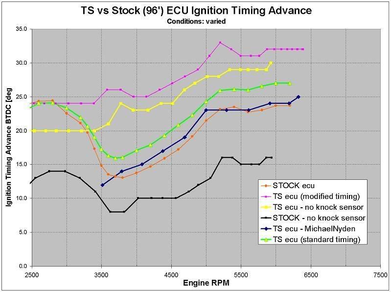 FWIW i had the standard TS ecu in my car for a couple of weeks and I didn't feel that much of an increase in midrange pull. When I installed the TS ecu with the modified timing, the increase in pull from 3.3K+ was very noticeable.