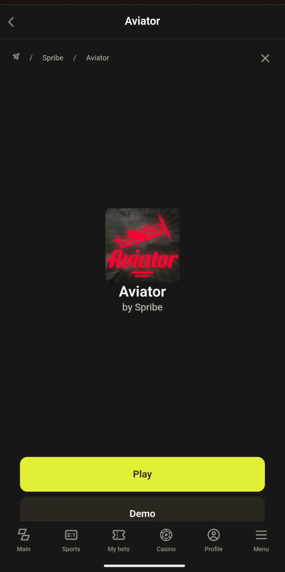 Aviator by Spribe is available directly on the platform with both play and demo options shown on the same screen. The interface is minimal, focused on quick access without extra steps or sections. In this context,
