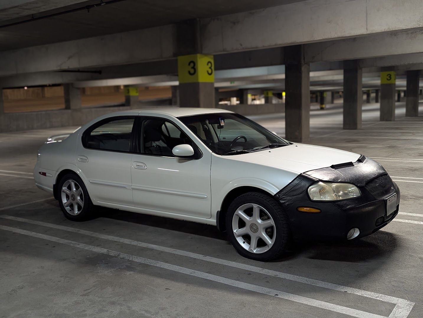 I'm the original owner of this car. She is a 2001 Nissan Maxima SE with an Icelandic Pearl exterior and a Black interior with simulated perforated cloth trim and seats. At the time, I actually had her custom ordered at the dealership, so she wasn't a dealer-upgraded / price-hiked model that was just sitting on the lot for me to pick.