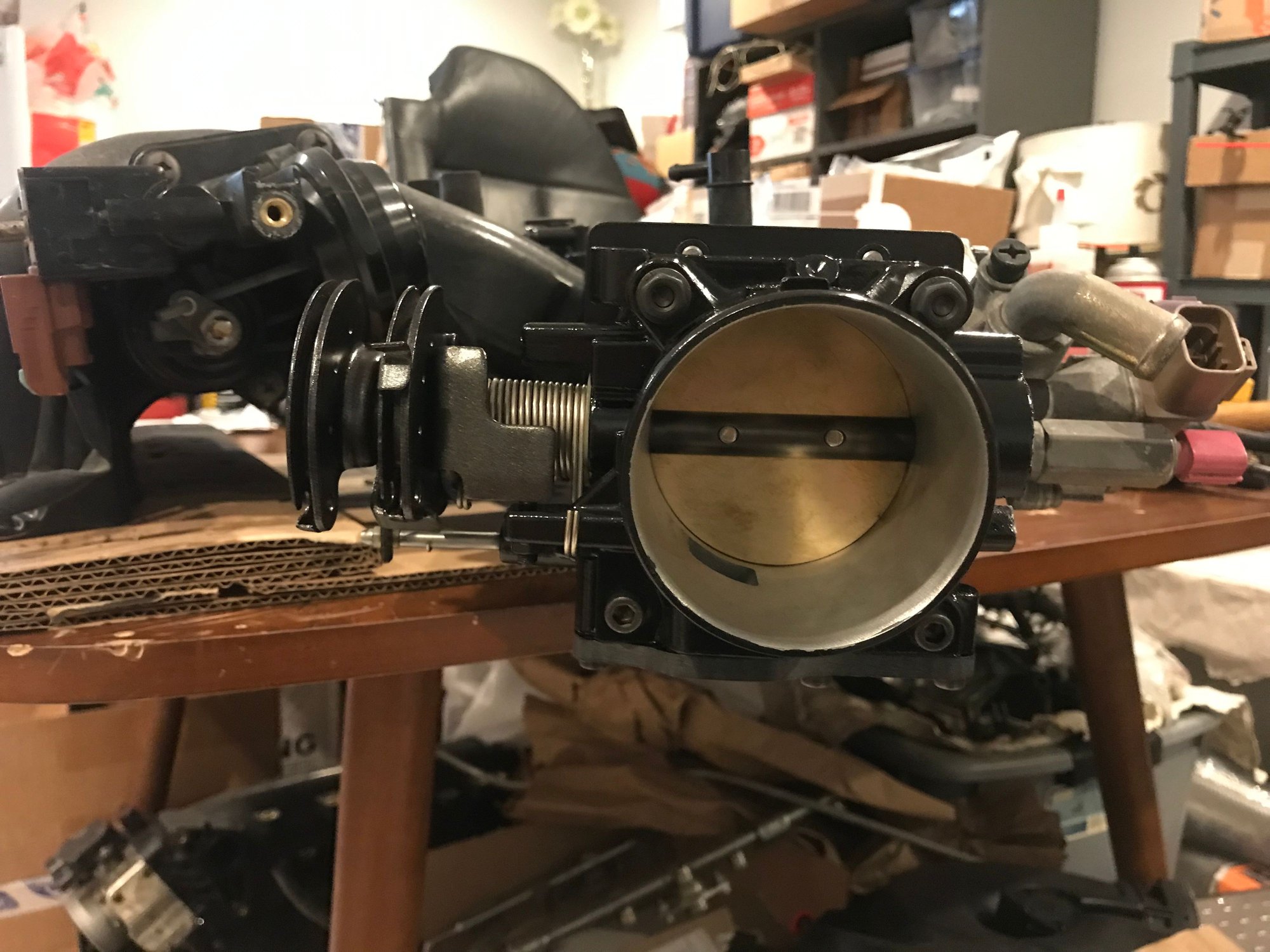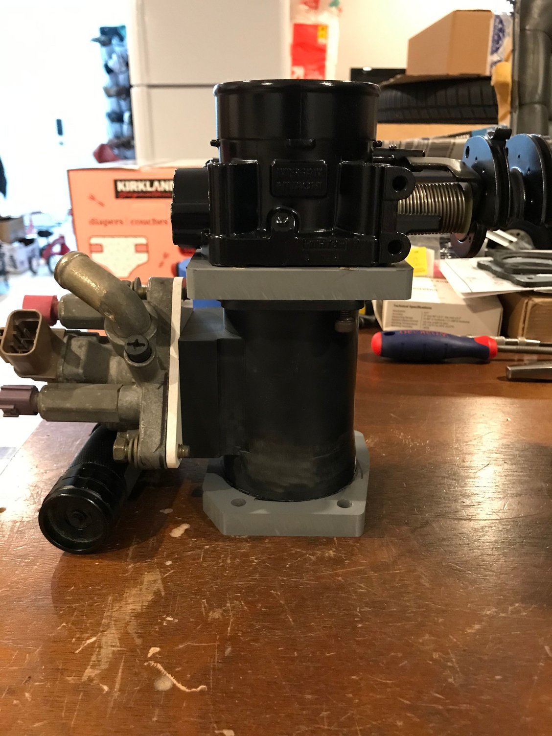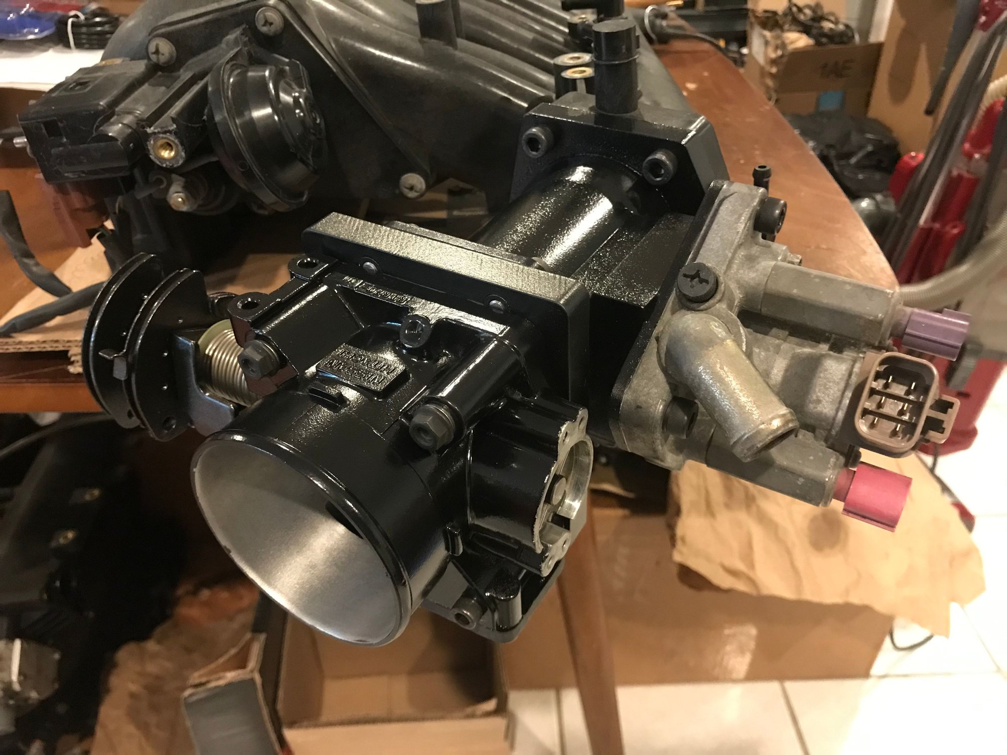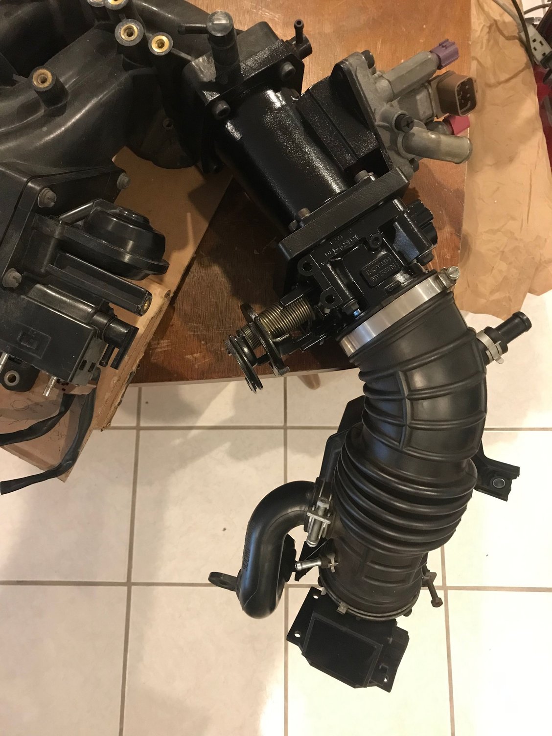 Yes, I used a bad MAF to make the adapter. It basically allows me to use the PFTB and mount the IACV in one go. Also increases the air volume of the intake manifold. Though I may not be able to use it as is. I ended up changing plans and made this off the car without rechecking my measurement. This is a bit too long and interferes with the ABS module. Either I have to modified it or start over but no big deal. I picked up another MAF tube to play around with incase I decide to sell this one to someone with no ABS.