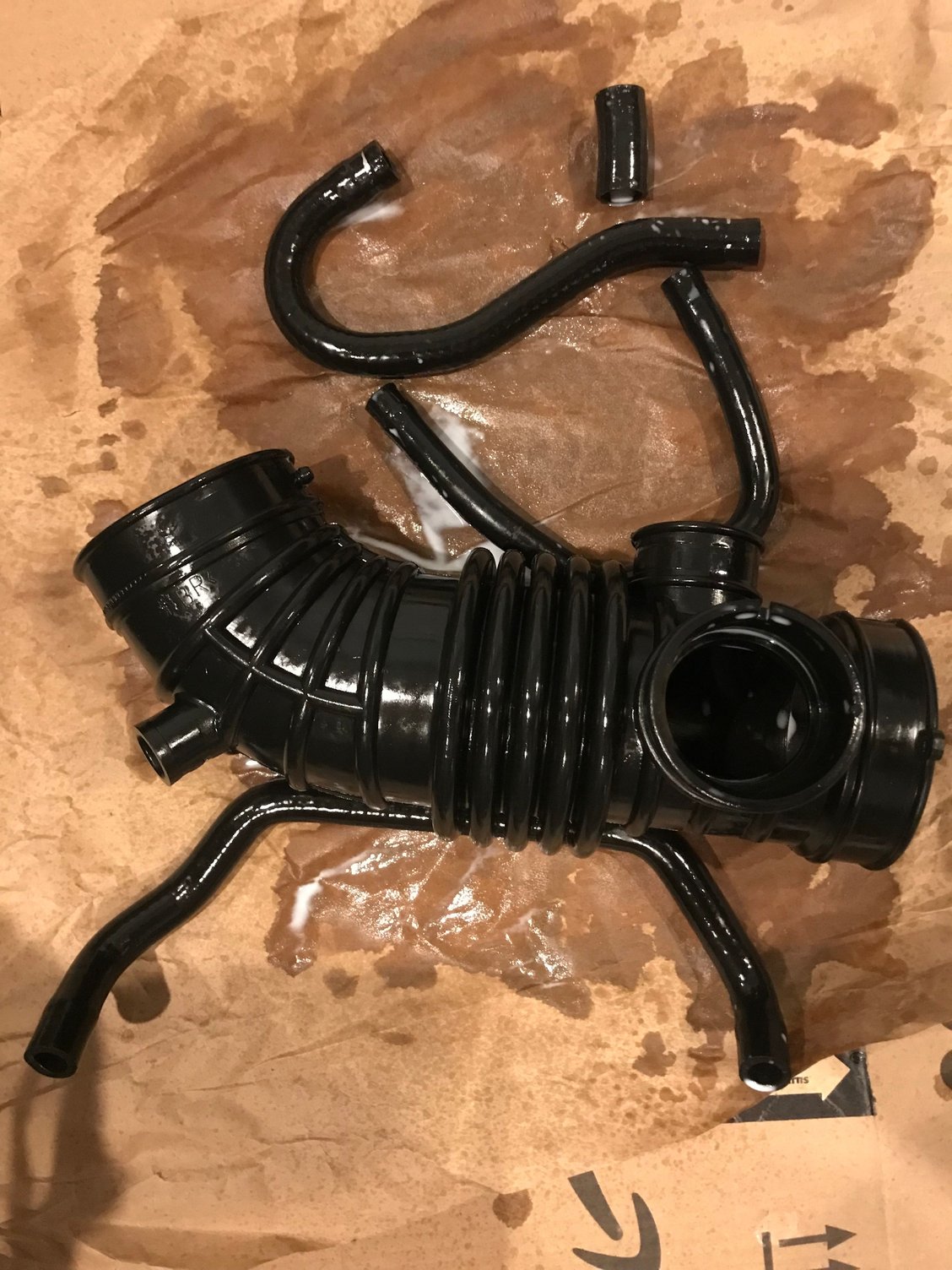 Here is a picture of the intake pipe as of today. Still a little wet and shiny. The previous picture was taken 08/18.