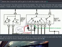 Ok so it's been quite a few years but in the middle of an engine swap I was easily able to access the inhibitor switch to add the diodes. This will isolate the Park and neutral indicator lights in the head display so they no longer both come on at the same time whether in Park or Nuetral. I'm not sure if I put the diodes cathode in the correct direction. If power comes from the 52 plug which I think it does then the cathode of the diode is in the wrong direction. Any thoughts ?